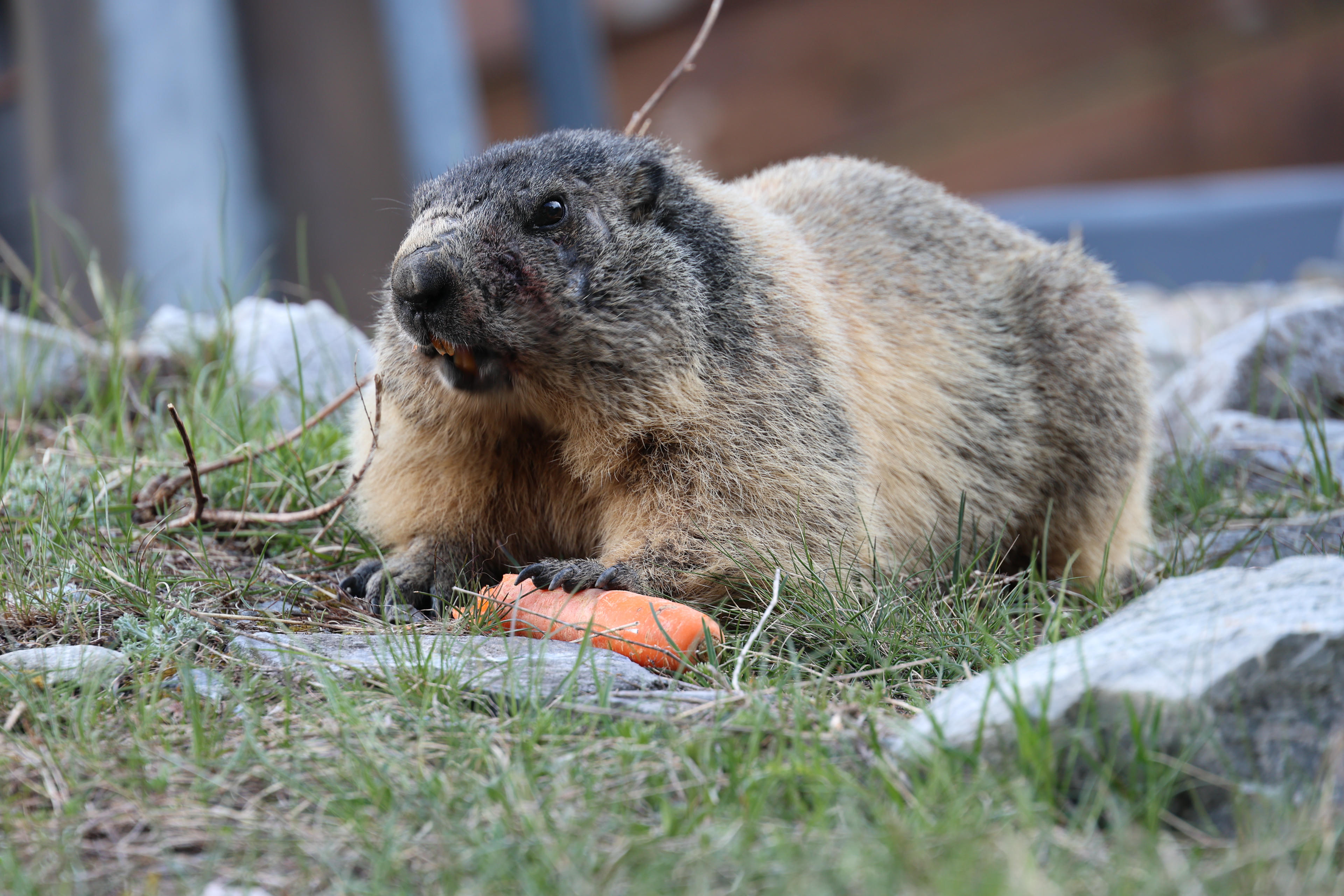 alpine marmot eating carrot