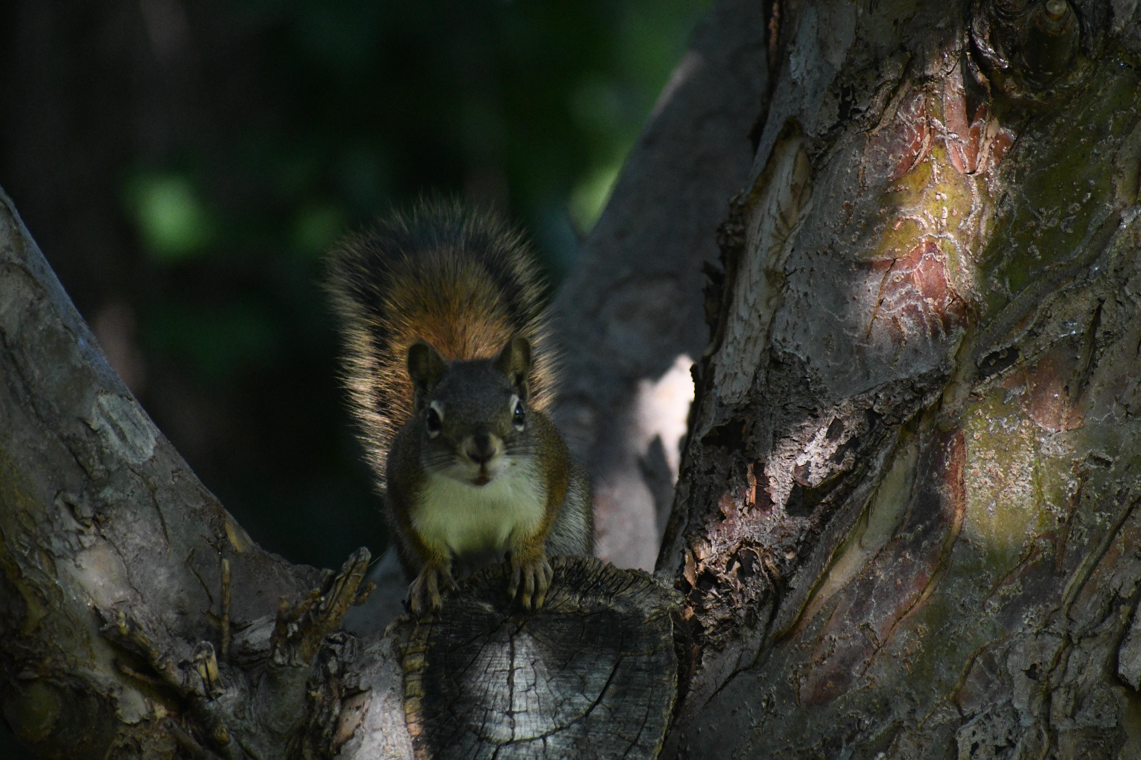 This pine squirrel, seen here on a backyard tree, lives in a residental neighborhood in Salt Lake City, Utah.